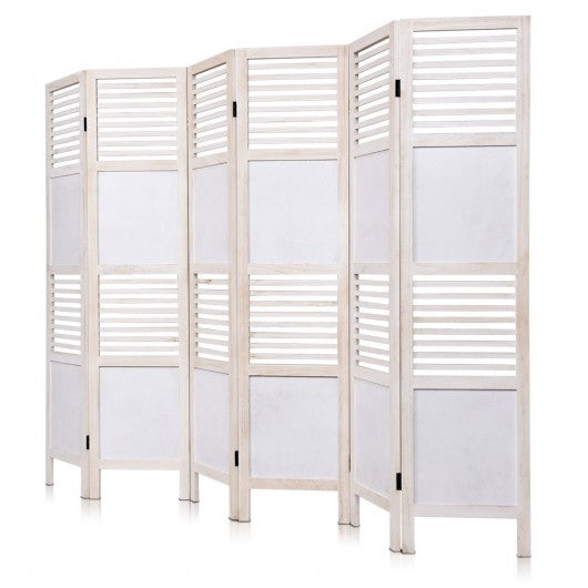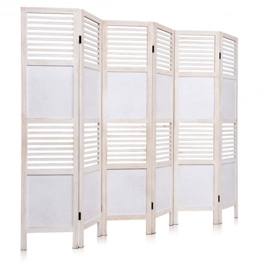 6 Panel Stripe-hollow Wood Folding Freestanding Room Privacy Screen
