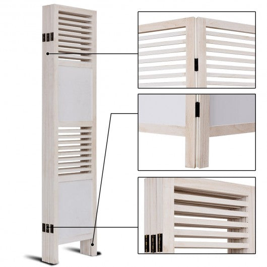 Specification: Color: White Material: Paulownia wood Weight: 28.5 lbs Flat size: 94.5" x 0.8" x 67" (L x W x H) Fold size: 16.0" x 5.0" x 67" (L x W x H) Package includes: 1 x 6 Panel wooden slat room divider
