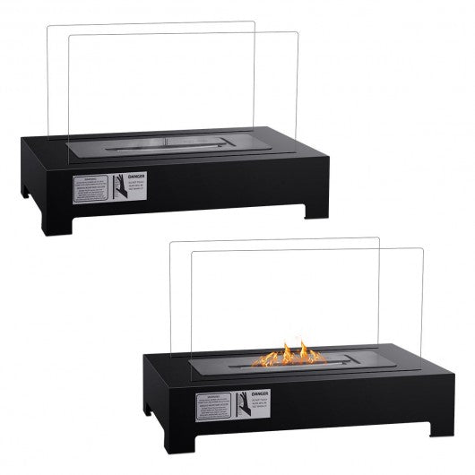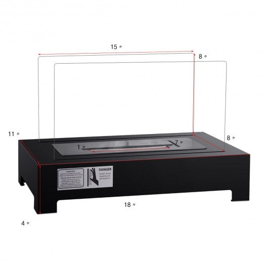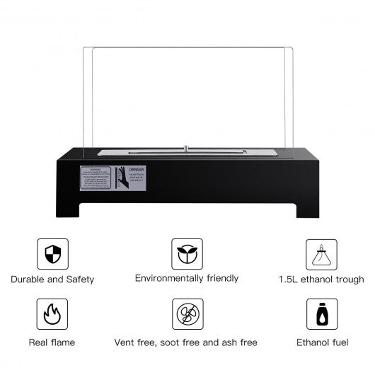 This is the tabletop and ventless fireplace which can add warmth and ambiance to any space. It features a modern design with a durable steel base and sleek glass sides. It provides a warm glowing flame that dances and swirls to set an elegant ambience as a dining table centerpiece indoors or out. This ethanol fireplace is sure to leave your guests a deep impression. This fireplace is made from durable steel ensuring that you your family and friends can enjoy this incredible piece for years. All you need to do is to purchase a bio ethanol fuel separately and light the flames after assembling. Plus the bio ethanol fuel that this fireplace uses is the cleanest burning fuel; it will not leave soot residue or smoke stains. Buy it! Notice: Please don't add ethanol during the burning process and if you need to put out the flame halfway do not use the fire to heat or boil water or as a cooking appliance. Do not put charcoal paper wood or other combustible objects into the fire. Brand new and high quality Modern piece with unique design Feature tempered glass plus a steady pedestal Quality heavy stainless steel linear burner No chimney no gas or electric lines required Eco-friendly and a long burning time The tabletop fireplace is freestanding and portable Use pure plant-based ethanol fuel Assembly required