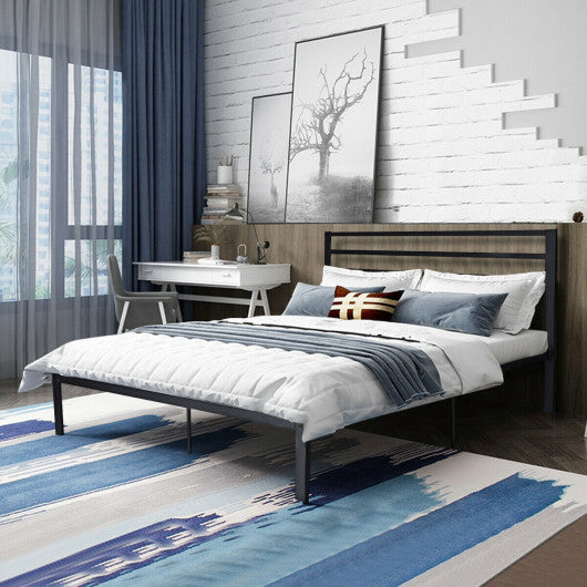 Queen Size Steel Bed Frame with Wooden Slat Support-Black