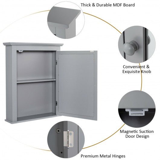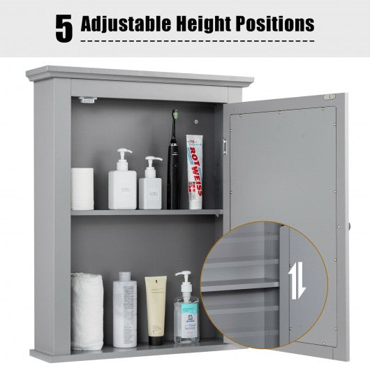 Bathroom Mirror Cabinet Wall Mounted Adjustable Shelf Medicine Storage-Gray
