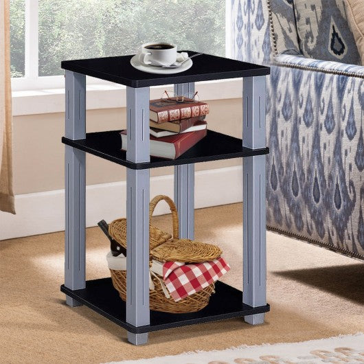 3 Tier End Table Multipurpose Shelf Night Stand Display Shelving-Black