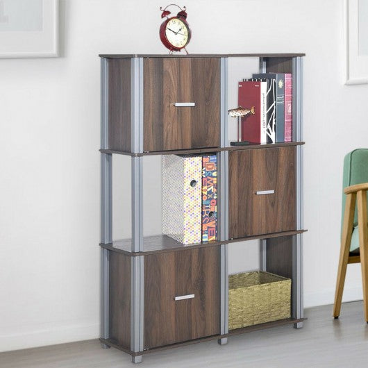 3-Tier 6 Cubes Storage Shelf Cabinet-Walnut