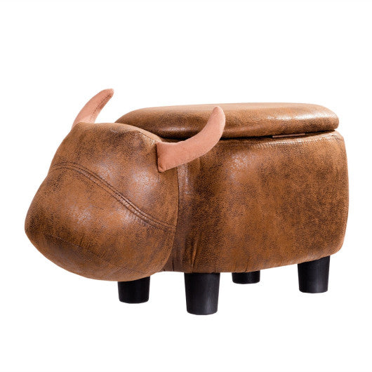 The ottoman footrest stool with storage function is of brown buffalo shape that is adorable and attractive to your kid or pet. It has a wide selection of usages such as a rest place for your legs and feet a good toy for your kid a good place for storage and a handy choice to change shoes. With a solid wood frame and plastic legs the ottoman is steady and stable. Also it is lightweight to move it to some place you like to rest. There is a hollow space in the middle of the frame in which you can store something needed frequently. The stylish and adorable outlook is easy to match your home decoration while resting on it with having fun. If you like this ottoman don't hesitate to buy one! Multifunctional design as a rest area for foot and leg a good toy a practical tool Solid wood frame for stable and steady With a storage space to store something needed frequently High density sponge as cushion for better comfort Wide surface of the stool provide smooth and comfy place for feet or legs rest Suede fabric with durability for resistant to corrosion Being lightweight adds portability The stool shape is lifelike and stere full Stylish outlook easy to match home decoration Adorable buffalo shape is attractive to kids Easy to assemble