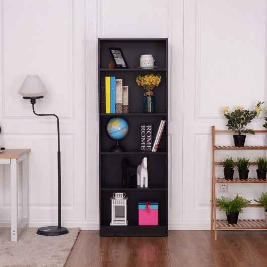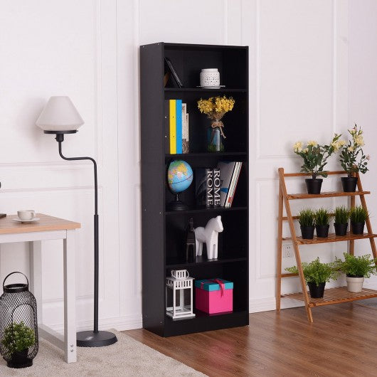 This is 5-tier shelf bookcase of modern style which is really fashionable and practical. It has compact design and is very elegant. Looking at this bookcase you may feel delightful. It's a treat for your eyes. This product has a large space for you to store things especially books. Big and thick books can find their place. You can also put other things on the shelf like some ornaments. You have a great chance to save your space and make your room a neat one. It's also a good decoration for your room making it more beautiful. The sturdy and stable construction of the bookcase brings you a sense of security. And it can serve you for a long time. Just buy this wonderful bookcase! High quality and brand new Fashionable and modern style Compact design Elegant appearance 5-tier shelves which is perfect for classifying your stuff Versatile storage functions storing books toys accessories etc Perfect decoration of home and office High quality wood construction provide lasting durability With 9 positions for 3 shelves to choose meet the needs of different height of object