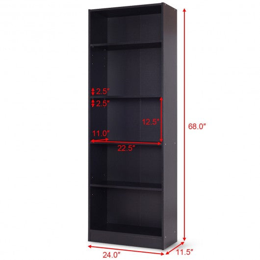 Specification: Color: Black Material: Wood Dimension: 24.0" x 11.5" x 68.0" (L x W x H) Size of the board: 0.6" Product weight: 48.4 lbs The weight capacity of each layer: 20 lbs Package include: 1 x Bookcase 1 x Instruction