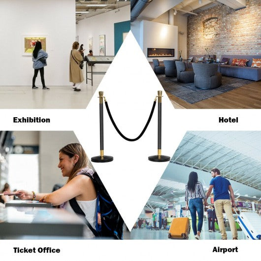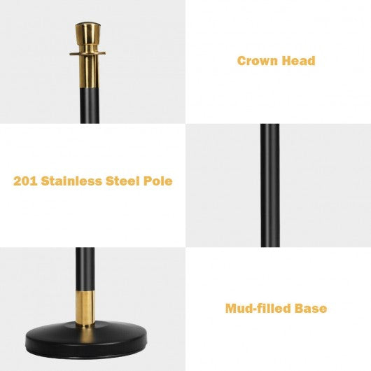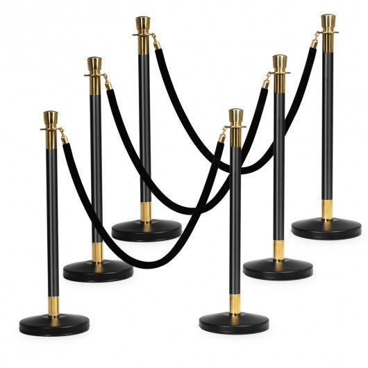 Stanchion posts improve customer experience by creating a sense of order and calm. This 6 pcs stanchion post set is for you. This metal stanchion is perfect for safely controlling crowds directing the flow of foot traffic or protecting a closed area for construction. Made entirely of 201 stainless steel our concierge column is durable and stable. You can install and remove this pillar in just a few seconds and no need for any extra tools. The base is made with sturdy and scratch-resistant metal. On the bottom of the base are no-skid non-marking rubber keeping the post in place and protecting the floor. If you are looking for a stanchion like this don't hesitate to buy it. 201 stainless steel flannel and metal materials make it durable Buckle at both ends for easy installation The anti-slip ring of the chassis makes it stable and not easy to scratch the floor The crown at the top of the pillar makes it attractive The weight of 94 lbs is actually easy to move around. Overall tapered chassis provides high stability throughout the courtesy column Black velvet rope and pillars look very textured