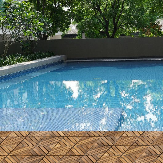 11 PCS Interlocking Wood Deck Tiles Patio Pavers Tiles Diagonal Floor