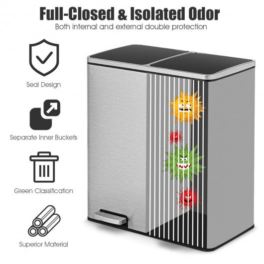 16 Gallon Dual Step Trash Can Recycling Double Bucket Pedal