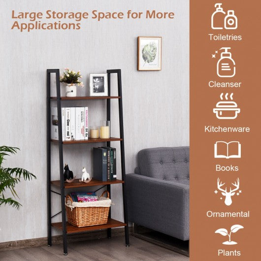 4-Tier Ladder Shelf Bookcase Bookshelf Display Rack Plant Stand-Black