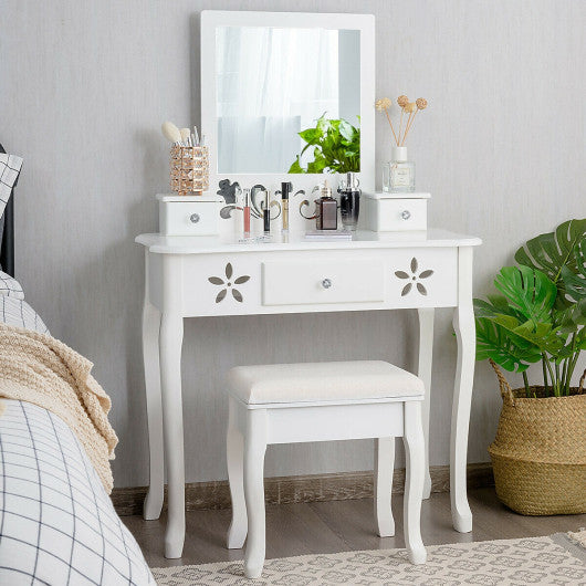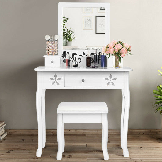 Vanity Modern Carved Table and Stool Set with Mirror 3 Drawers