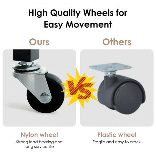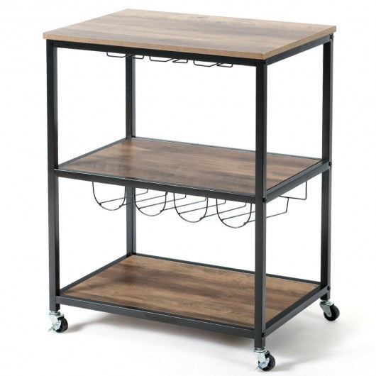 This serving cart is made of rugged iron construction and durable particleboard countertop to withstand at least 22 lbs weight per layer. It's eco-friendly and sturdy to last for a long time. 3-tier shelves 3 rows of wine glass holders and 4 wine bottle holders for storing items with a huge and intelligent storage space you can place all your kitchen appliances in these spaces. 4 universal wheels has a high mobility to move everywhere and 2 lockable nylon wheels give it a feature to stop conveniently at a desired location without excessive noise. Detachable cup holders and bottle holders allow you to optionally install them to make the kitchen cart be as a storage shelf. It can be used as transporting supply in kitchen or just be used as an extra storage shelf to place your items in living room bedroom or offices. If you are looking for the serving cart don't hesitate to buy it! Rugged iron construction and great particleboard countertops for durable and eco-friendly use Safe painted iron surface is more waterproof and corrosion resistant Equipped with 4 rolling wheels and 2 of them have brakes to quick movement and placement Multiple storage spaces to fully hold your items Detachable wine glasses holders and bottle holders provide extra storage space Elegant appearance can perfectly fit any decoration Can be used as a kitchen cart or as a storage shelf Widely used in various occasions such as living room bedroom or offices Easy to assemble and clean