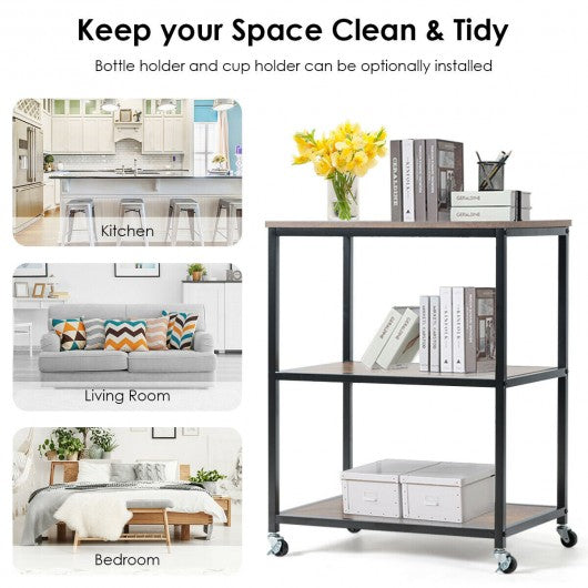3-Tier Metal Frame Rolling Kitchen Island Trolley Cart-Natural