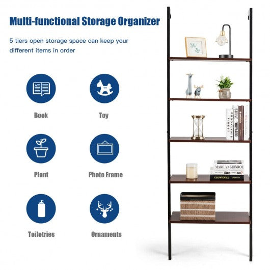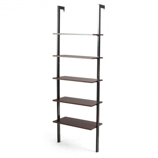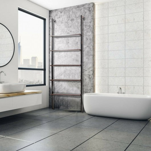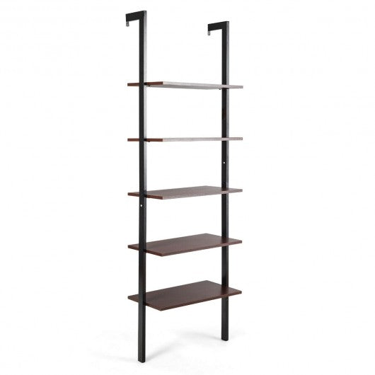 This ladder shelf rack is made of premium particle board and sturdy steel frame which can make the shelf more sturdy and stable. Because of the wall mounted design this storage shelf is space saving and safe enough for you to use. With a classic vintage style our bookshelf has a unique style. The shelf can be used as a storage shelf bookshelf or display stand in the living room bedroom kitchen cafes office and other places. With 5 tiers of storage space you will have plenty of room to store and display your loved things. Installation is also very easy for you. This wooden stand is definitely unique to light up the room! If you are looking for this product dion't hesitate to place an order! Sturdy steel frame and particle board for durable and long-lasting Wall mounted design for ultra stability 5 tier ladder shelves for sufficient space to storing any items you want Perfect choice to decorate your home or display some artistic items Elegant and modern style with simple construction Compact and space-saving design is suitable for limited space Suitable for living room bedroom office kitchen balcony or any room Easy to clean and assemble