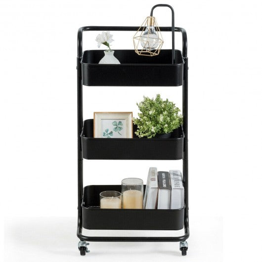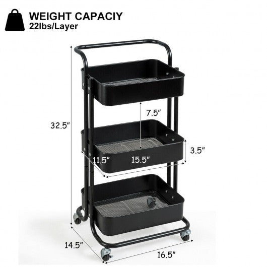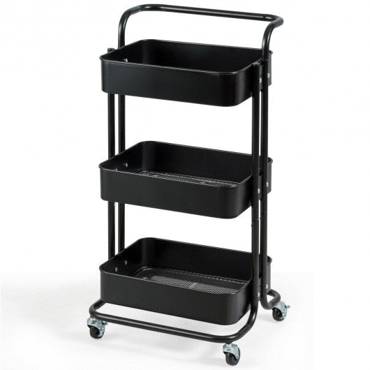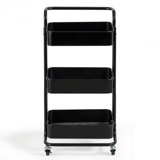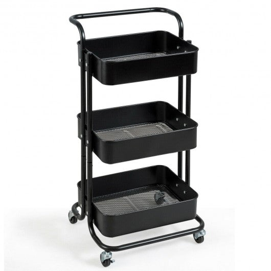 This is the portable 3-tier utility cart which is ideal for adding extra storage space to your home.     Made of powder coated steel this trolley cart is sturdy and durable able to withstand long-term use. Featuring four universal wheels it can be easily moved anywhere you need. 3-tier design provides large storage space while saving you floor space to optimize the space utilization as much as possible. Simple appearance makes it suitable for living room kitchen dining room and other occasions.     If you are looking for such a cart don't hesitate to buy it!     High quality iron ensures sturdiness and durability 3 storage baskets provide sufficient space for your daily storage Can be easily moved with four 360-degree wheels and a wide handle Simple and modern appearance is suitable for various home decors Powder coated metal frame is rustproof and easy to clean Can be used in kitchen bathroom bedroom and other places Easy to assemble with detailed instructions