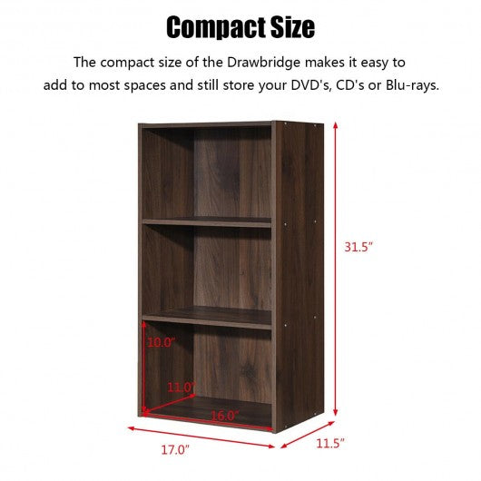 3 Open Shelf Bookcase Modern Storage Display Cabinet-Walnut