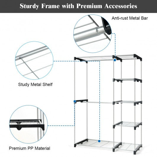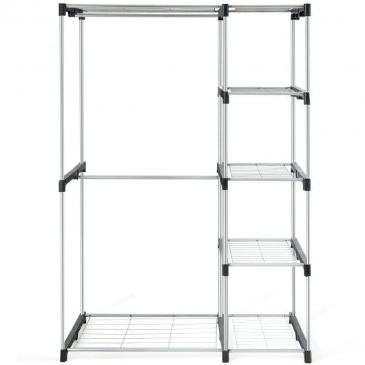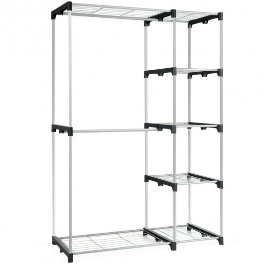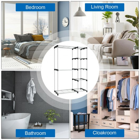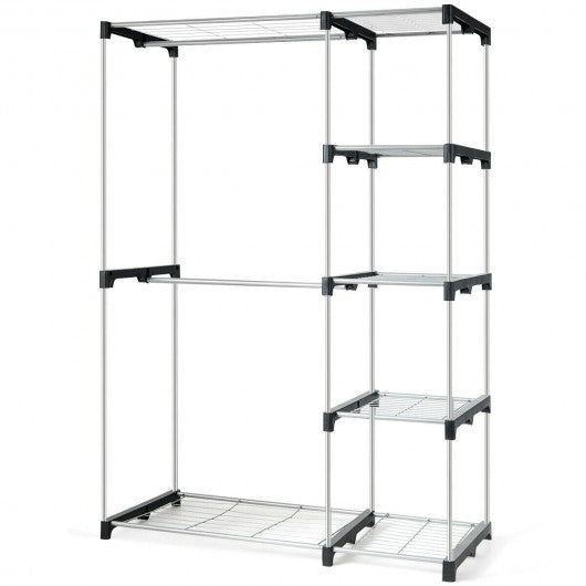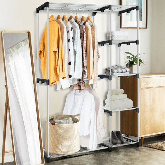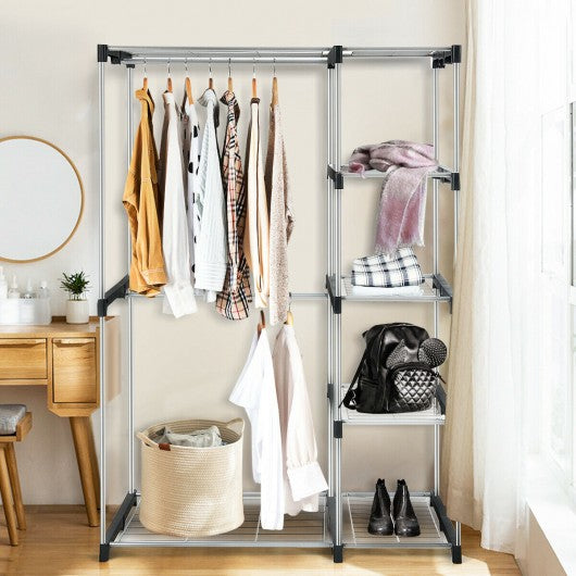 Freestanding Clothes Organizer Rack with Shelves and Hanging Rods