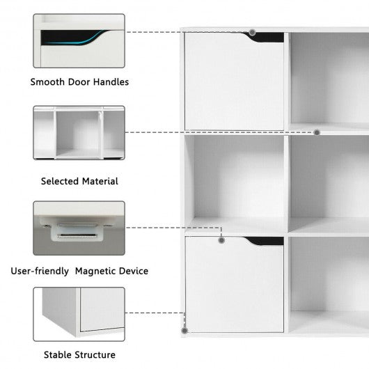 The fashionable side cabinet is made of thicken chipboard and premium screws which is durable and stable for extend services lifetime. Additionally free standing structure with anti-tipping devices provide better stable and extra safe. Combine open storage cubes with enclosed storage cubes so it is multifunctional and versatile to meet your needs. Most importantly the 6-cube storage cabinet can make the most use of your limited space and provide ample storage and display space for your books toys potted plants and decorations. Featuring clean lines and modern style this beautiful and practical furniture is the perfect addition to your bedroom living room kitchen and office. If you are looking for this kind of product don't hesitate to place an order! Made of premium chipboard sturdiness and durability 9-cube organizer cabinet provides storage and display space 3-tier bookcase provides sufficient storage space The smooth surface is waterproof and easy to clean. Perfect for bedroom living room study room and office Having open cubes and hidden storage space Modern 3-tier bookcase adds charm to your room Anti-tippling devices add extra security Easy to assemble with numbered part and instruction