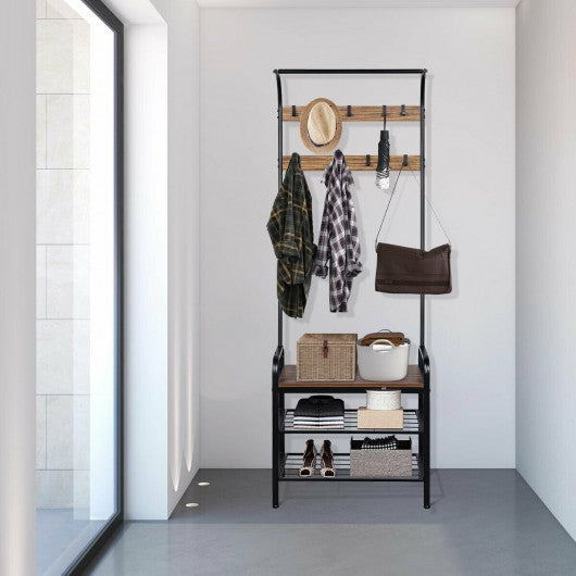 Industrial Coat Shoe Bench Entryway Shelf with 9 Hooks