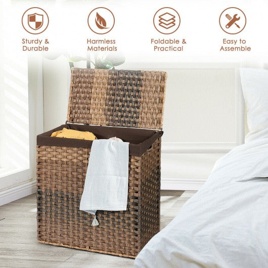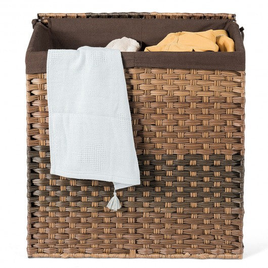 Laundry Hamper Hand-Woven Synthetic Rattan Laundry Basket-Brown