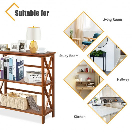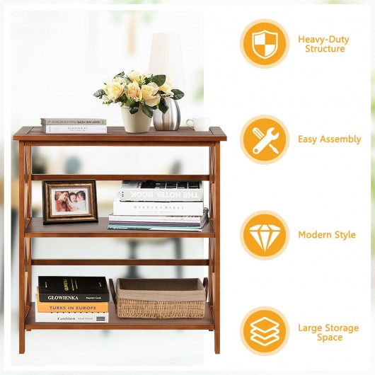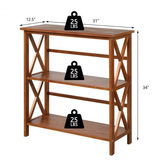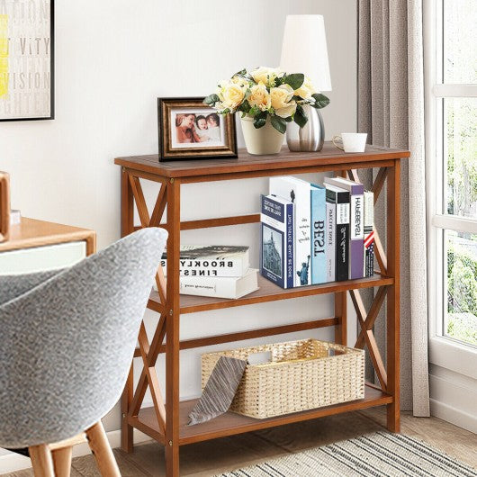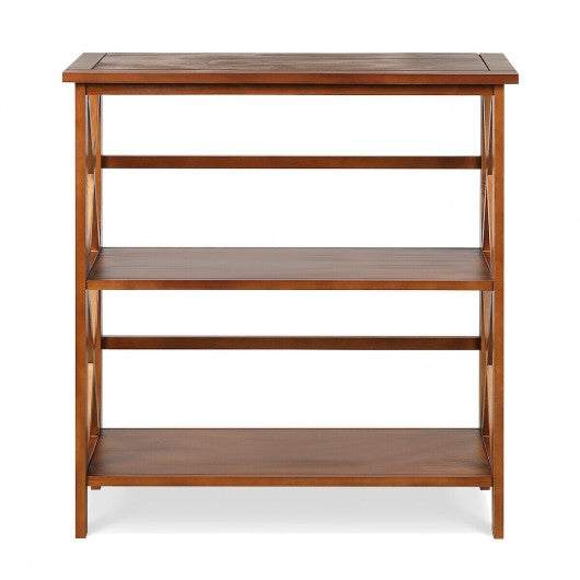 3-Tier Wooden Open Shelf Bookcase with X-Design-Natural