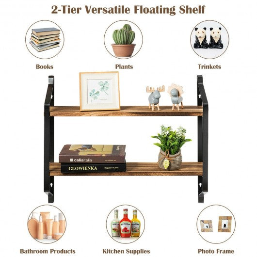Wooden Wall-Mounted 2-Tier Floating Shelves