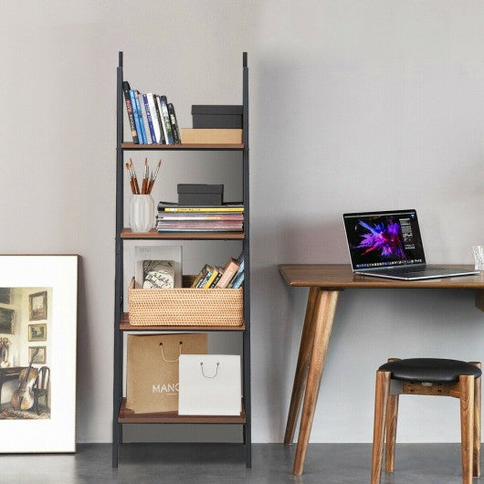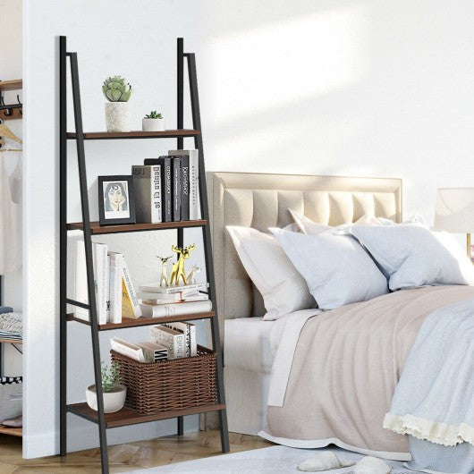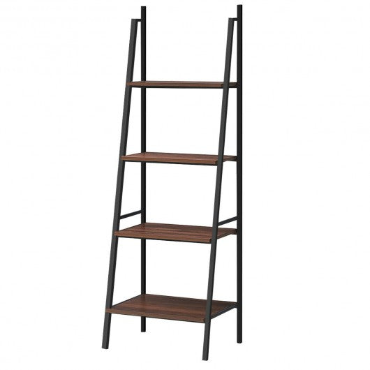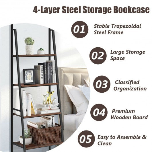 When you need more storage space and make full use of the limited space in your home please consider this stylish 4 tiers ladder shelf. This is a premium and good looking shelf which is made of sturdy steel materials and durable particle board for long lifespan. This bookshelf has 4 non-slip foot pads which can increase the stability and prevent the floor from being scratched. Coming with the tilting prevention device you don't have to worry about the problem of falling shelves causing injuries to children. The unique trapezoidal design with 4- tier ample storage space can provide you with better using experience. Just put the 4 tiers ladder shelf in your home and make it becomes a beautiful decoration It is made of steel materials and durable particle board for long lifespan Make full use of the compact space in your home and expand your storage space Good bearing capacity can meet your different placement requirements Trapezoidal frame for added stability Suitable for different places like living room study and balcony Tilting prevention device is equipped for safety Stylish and retro design can match well with other furniture d�cor The height between each layer is tall enough to accommodate a variety of items Easy to install with detailed instructions.