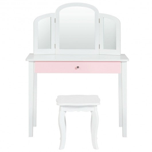 Kids Princess Make Up Dressing Table with Tri-folding Mirror & Chair-White