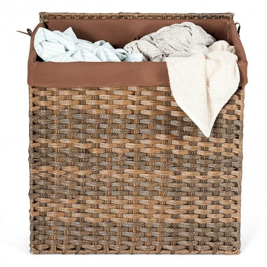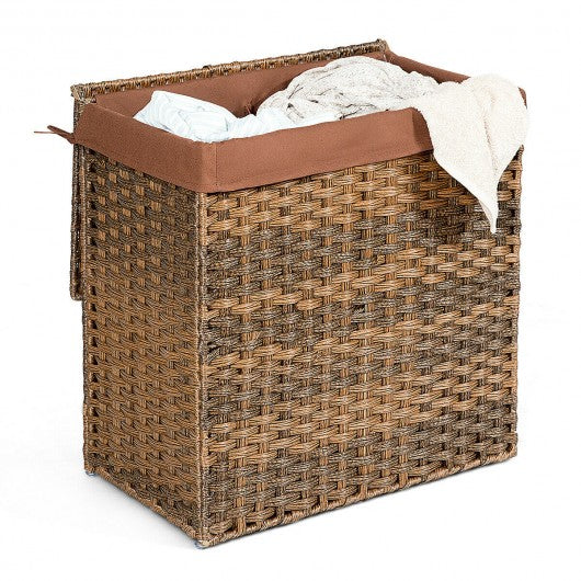Hand-woven Foldable Rattan Laundry Basket-Brown