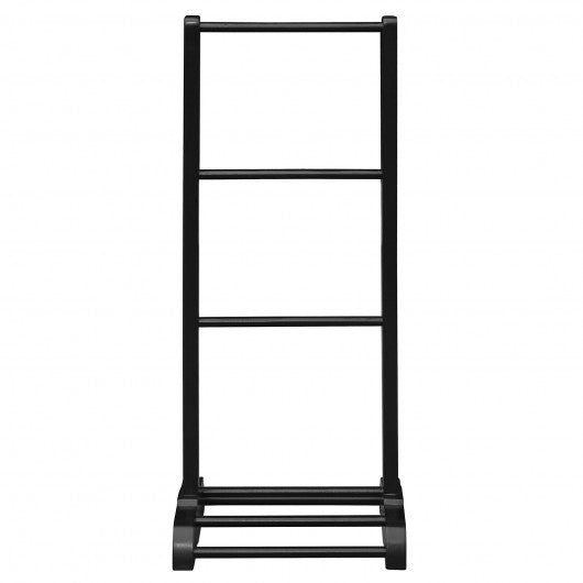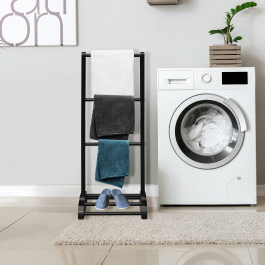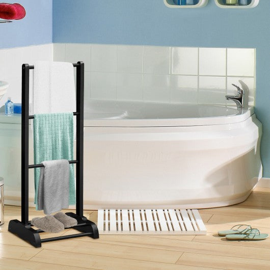 3-Bar Acacia Wood Freestanding Bathroom Towel Rack with Bottom Storage Shelf-Black