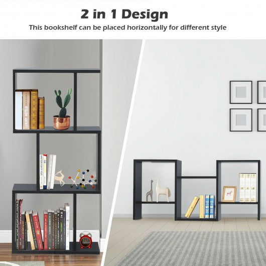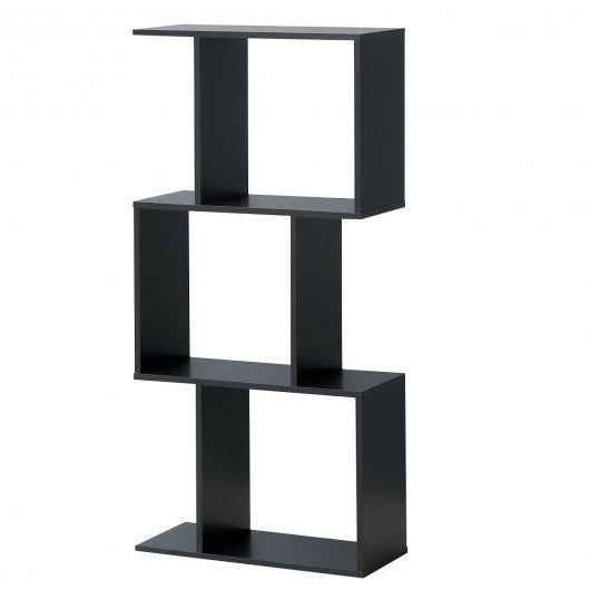 3-tier S-Shaped Bookcase Free Standing Storage Rack Wooden