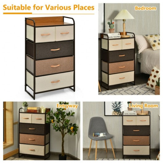 4-Tier Organizer Tower Steel Frame Wooden Top Storage with 5-Drawer Dresser