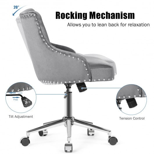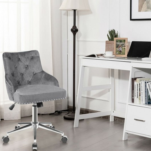 Tufted Upholstered Swivel Computer Desk Chair with Nailed Tri-Gray