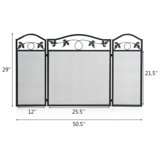 Specification: Color: Black Material: Steel Fully expanded size: 50.5�x 29� (L x H) Size of side panels: 12�x 29� (L x H) Size of centre panel: 25.5� X 29� (L x H) Folding size: 25.5�x 2�x 29� (L x W x H) Net weight: 12 lbs 1 x 3 Panel Folding Fireplace Screens