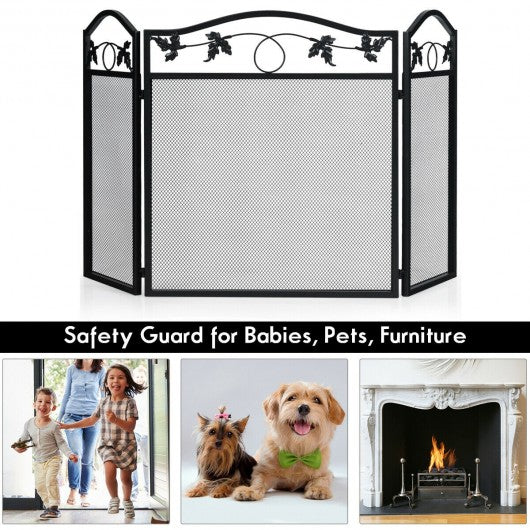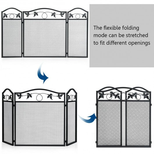3 Panel Foldable Steel Fireplace Screen Spark Guard Fence