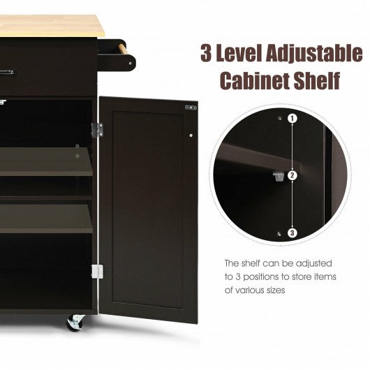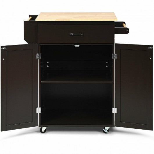 Utility Rolling Storage Cabinet Kitchen Island Cart with Spice Rack-Brown