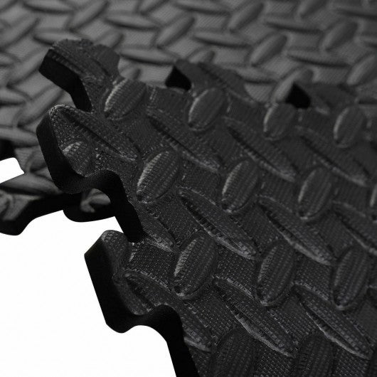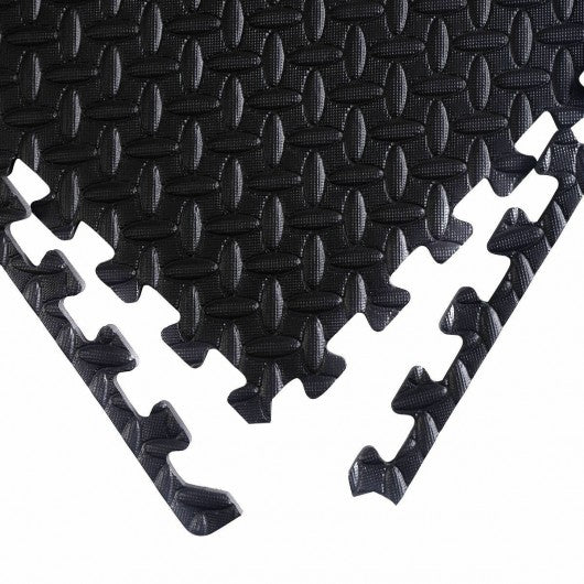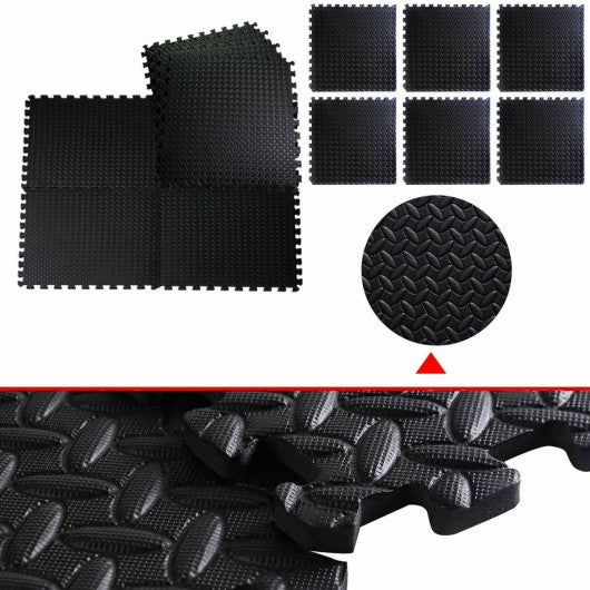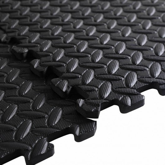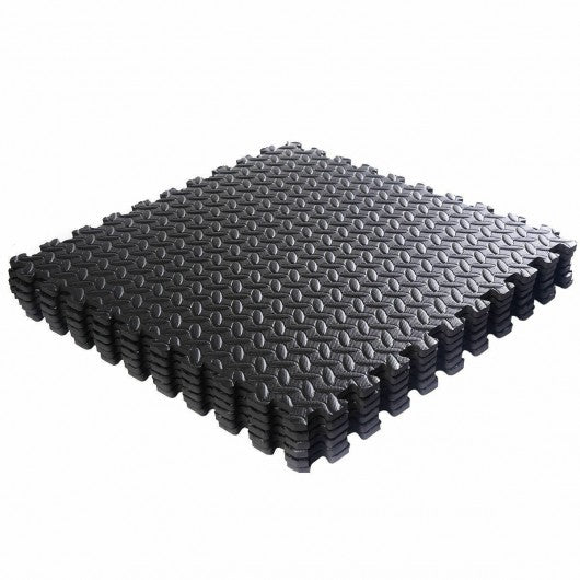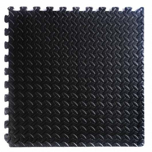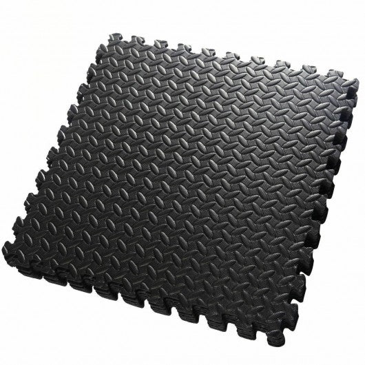 Specification: Color: Black Material: High density EVA Size: 24" x 24" x 0.5" (L x W x H) Includes: 12 x Tiles will cover 48 square feet