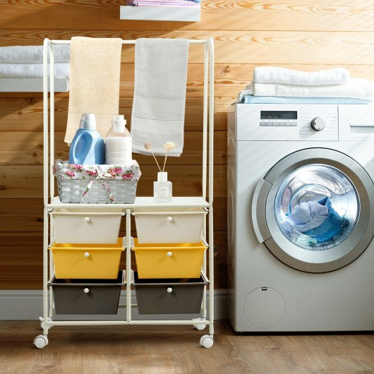 6 Drawer Rolling Storage Cart with Hanging Bar -Yellow