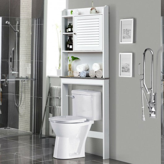 Made of P2 MDF with the moisture-proof paint this over the toilet space saver is particularly suitable for the wet environment for all your bathroom storage needs. This upgraded toilet rack is durable and stable. It features cubbyhole storage with an adjustable shelf two long shelves and a louver door ideal for a wide variety of toiletries medicines and more. With this toilet rack your bathroom will be tidier and cleaner. If you are looking for a toilet space saver don't hesitate to buy this one! Healthy & environmental-friendly materials non-toxic and odorless Moisture-proof coated surface easy to clean and keep stable Maximized your bathroom space with an open shelf and a door cabinet Adjustable shelf behind the door with 5 heights allows you to change height as your needs High-quality MDF panels are sturdy and durable for long use time Compatible specification suitable for most standard bathroom Simple installation detailed instruction & accurate hardware Large storage space for storing things such as bath essentials towels Modern & elegant appearance white paint smooth panels and a black paint faux marble panel