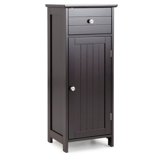 Wooden Bathroom Floor Storage Cabinet with Drawer and Shelf-Brown