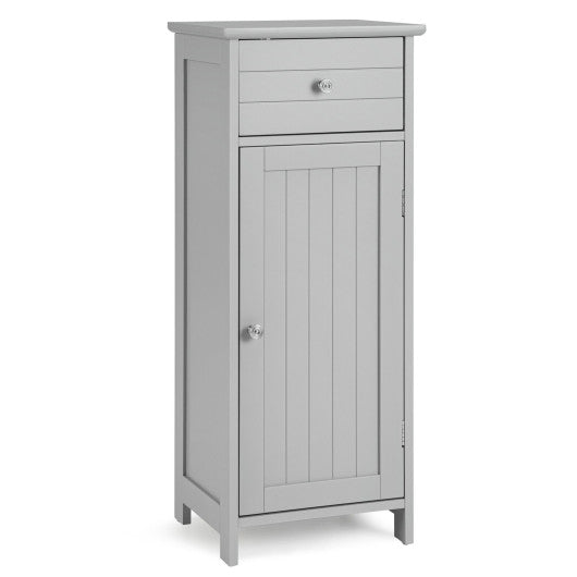 Wooden Bathroom Floor Storage Cabinet with Drawer and Shelf-Gray