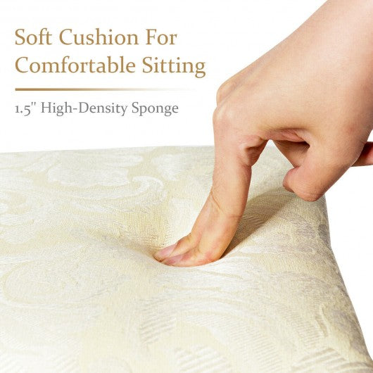 This premium quality stool will be loved by people for its curved design and golden tones cushion. You can put all your clothes for the next working day on the stool or just sit comfortably in front of the vanity table to do your dressing. The slightly curved legs and the attractive cover with golden tones are made for a sophisticated look. With its simple and elegant design it can be easily match with any rooms. Made of MDF and pine wood this dressing stool is durable and sturdy. If this is just what you are looking for do not hesitate to buy it. High quality and brand new Dressing or piano stool Seat with thick cushion Elegant curved design for legs A beautiful addition to any room Easy assembly