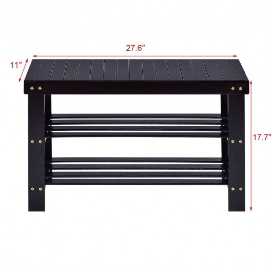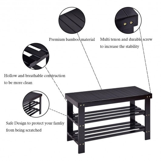 3 Tier Bamboo Bench Storage Shoe Shelf-Black