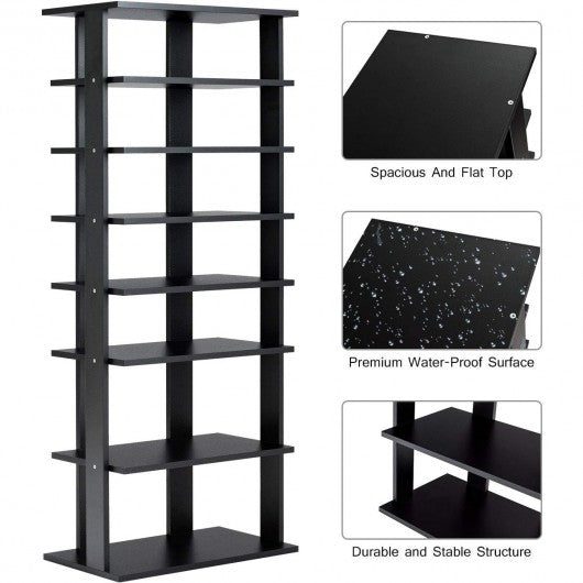 7-Tier Dual Shoe Rack Free Standing Shelves Storage Shelves Concise-Black