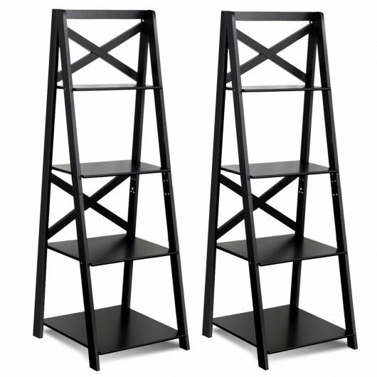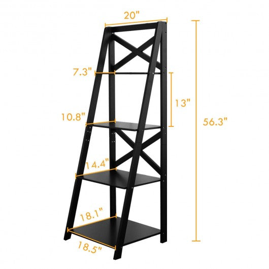 These 4 shelves with various heights and sizes promote storage of books photo frames and other items. This 4-tier ladder shelf not only provides you with an efficient storage space but also adds a modern touch to the surrounding. Thanks to the use of premium MDF board the whole shelf is eco-friendly and durable at the same time. And with the spray-painted surface the color and texture feel better while remaining waterproof. Besides it's convenient to assemble as well as maintain.Start organizing your items with the help of this stylish A-shaped bookcase. If you are looking for such a product. Don't hesitate to buy it! Wide application and multifunctional properties make it suitable for home and office use 4-tier shelves of different heights offer large storage space Made of premium MDF board is eco-friendly and durable Stable and sturdy structure with 11lbs load bearing capacity for each shelf Modern style with A-shaped design blending seamlessly with most décor Paint-spray surface for better color and texture and is resistant to water/moisture damages Easy to clean and maintain and easy to assembly equally