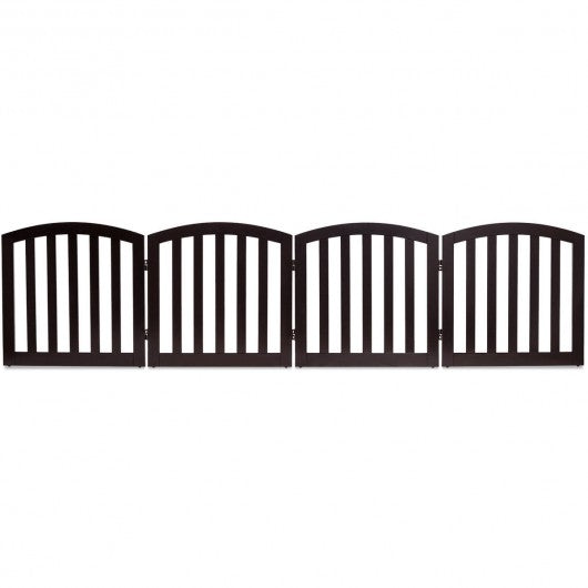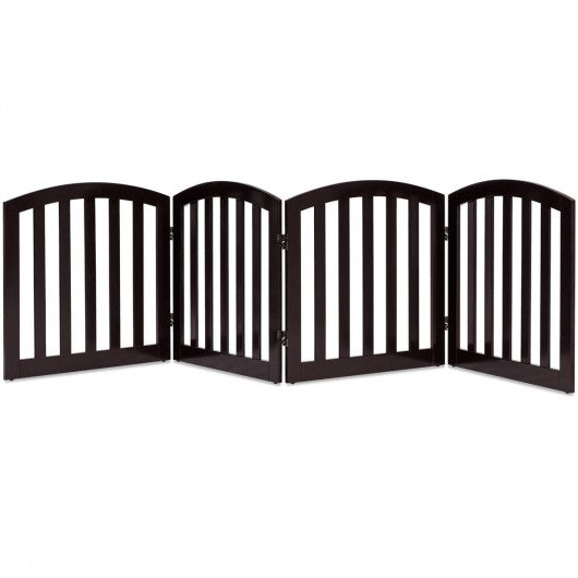 24" Configurable Folding Free Standing 4 Panel Wood Pet Fence-Brown
