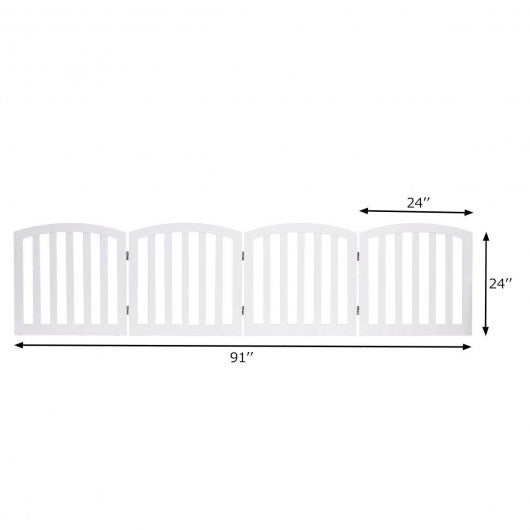 24" Configurable Folding Free Standing 4 Panel Wood Pet Fence-White