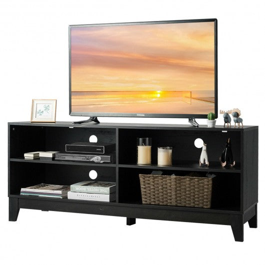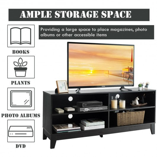 58" Modern Entertainment Media Center Wood TV Stand-Black