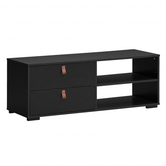 This stylish TV stand will add plenty of storage space and glamour to your home! Made of premium engineered wood our TV stand is sturdy and durable with long service life. 5 wide legs ensure excellent stability and the anti-scratch foot pads can protect your floor from damage. The spacious tabletop can support up to 55 inches of TV and some decorations. Two large drawers and adjustable shelves provide ample storage space for your books audio equipment snacks etc. In addition PVC handles and smooth drawer rail slides allow you to access items with ease. If you are looking for a piece of furniture that combines aesthetics and practicality to improve your quality of life then this TV stand should not be missed! If you are looking for a TV stand like this do not hesitate to place an order Crafted of premium engineered wood for long-term use 5 wide legs with anti-scratch pads to strengthen its stability Open compartments and two large drawers for ample storage Adjustable shelf to meet the storage requirements of different height supplies Spacious tabletop to hold a 55" TV and some decorations PVC handles and smooth drawer slides for easy access of items Can be used as a TV stand console table or display cabinet Suitable for living room bedroom activity room and other places