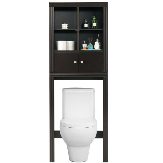 Over the Toilet Storage Cabinet with 4 Open Compartments-Brown
